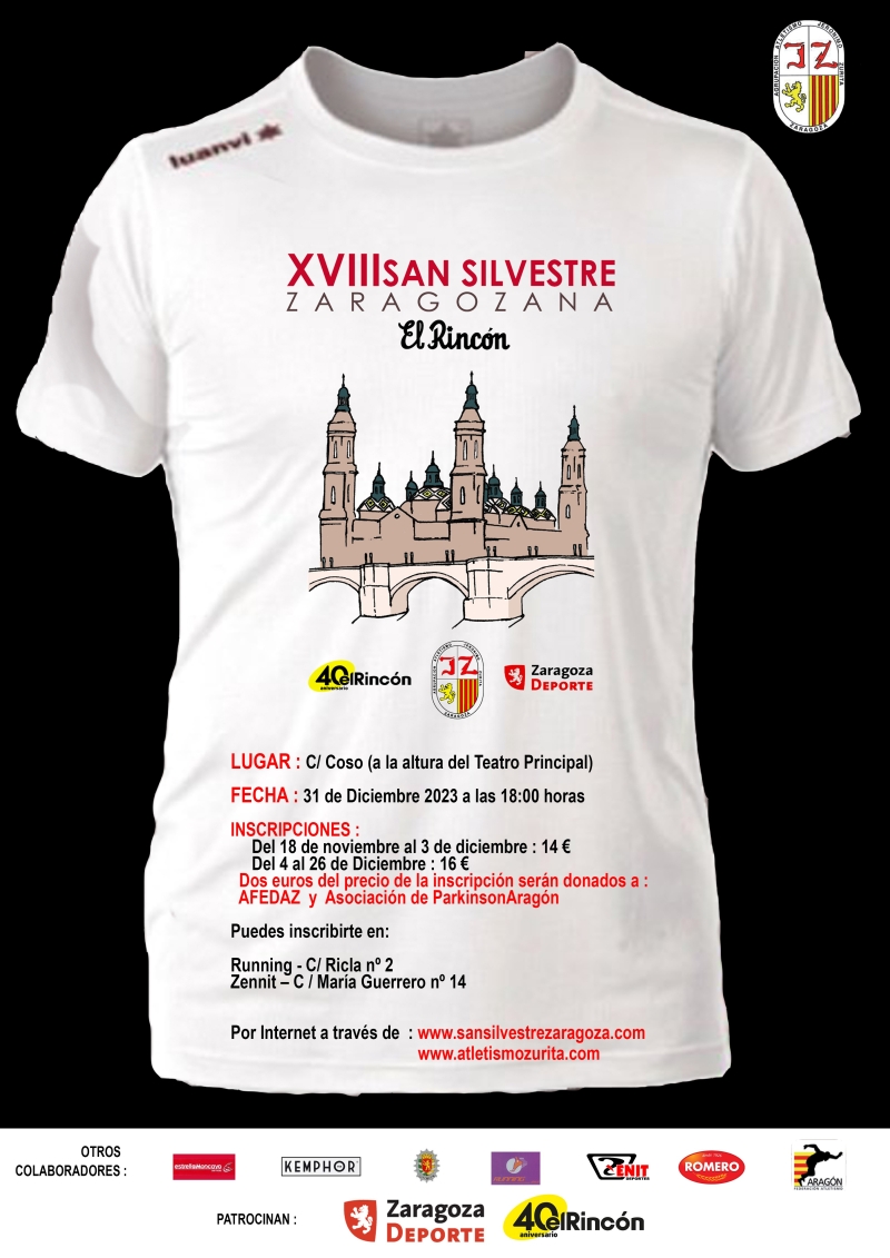 El próximo 31 de diciembre de 2023 se celebrará en Zaragoza la 18°Edición de la Carrera Popular San Silvestre - El Rincón de Zaragoza que organiza la Agrupación Deportiva Atlética Jerónimo Zurita.