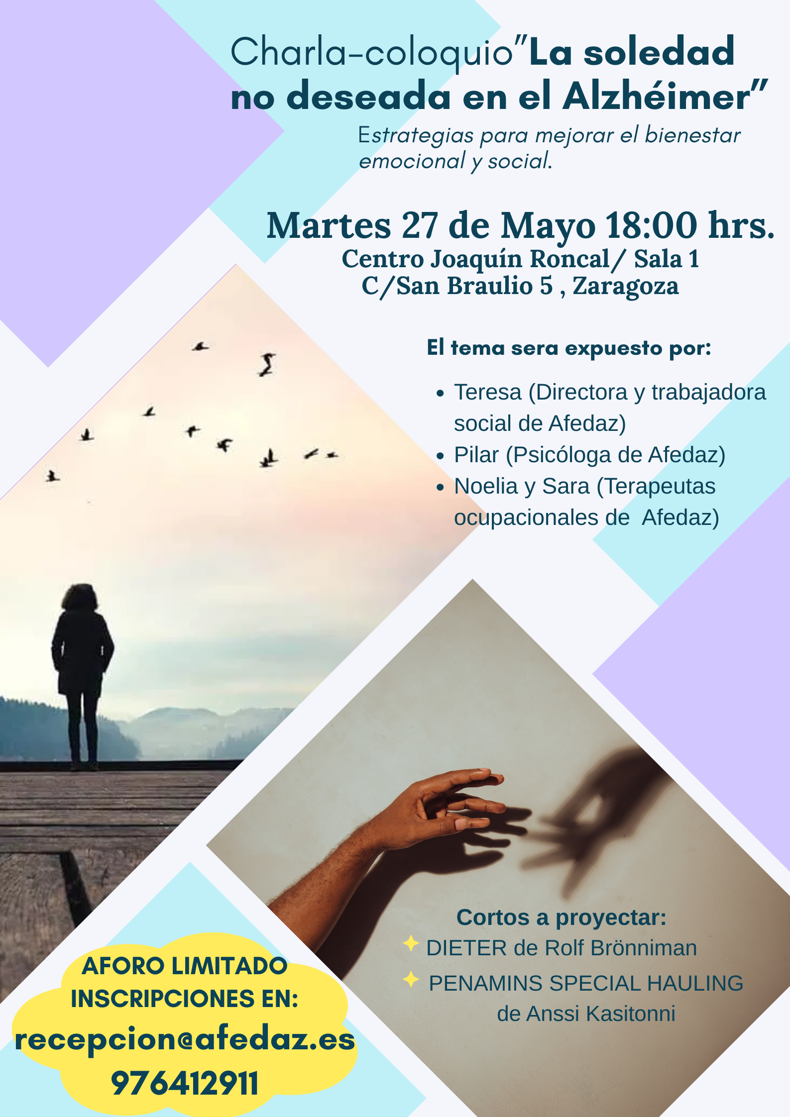 Martes 27 de mayo 18:00 horas Charla - coloquio "La soledad no deseada en el Alzheimer"