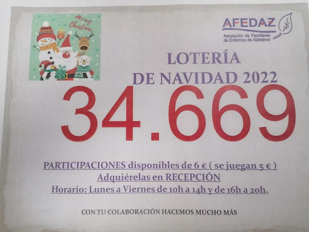 Ya podéis adquirir el número de Lotería para estas navidades de AFEDAZ, 34.669,