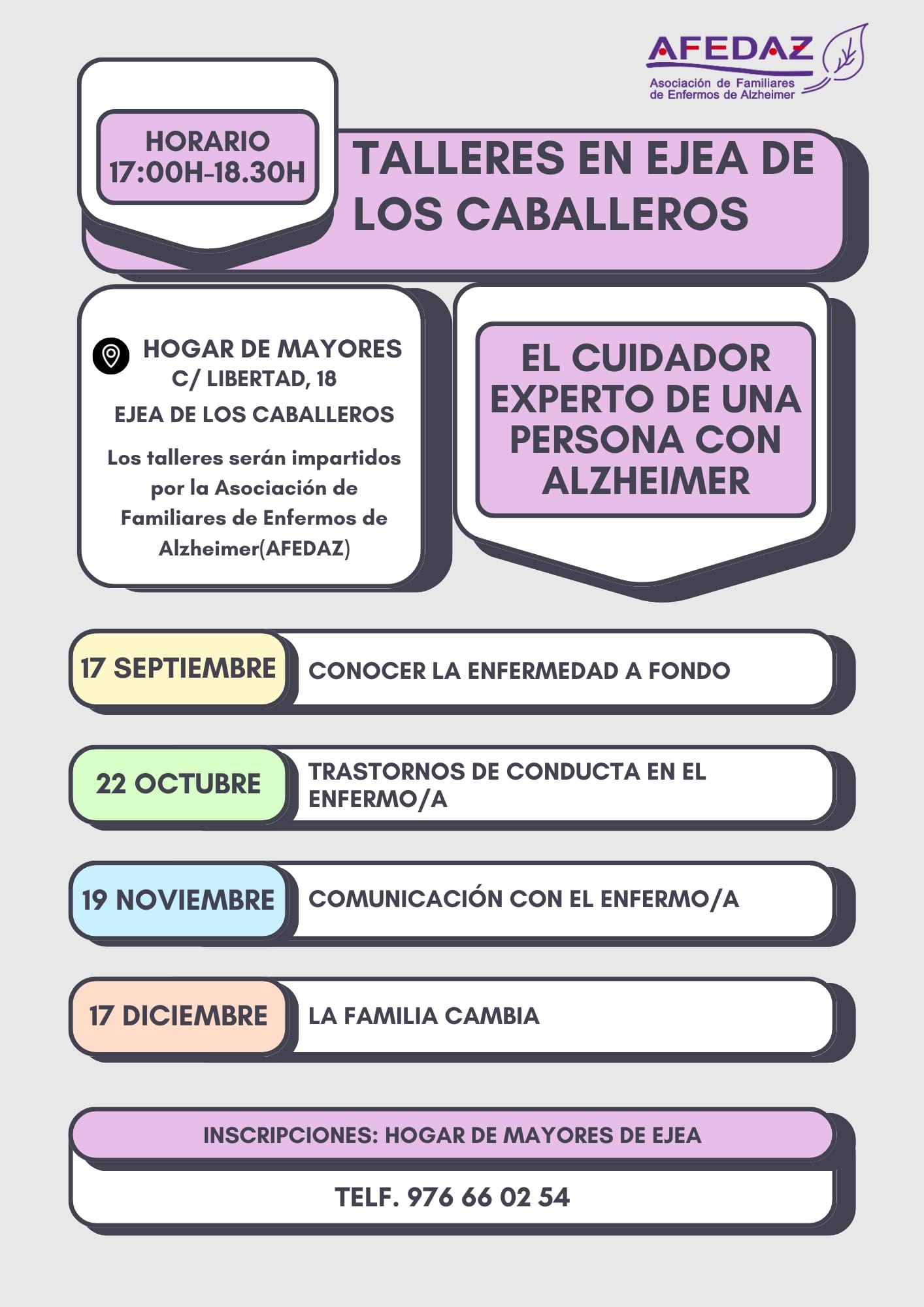 Este miércoles 17 de septiembre os esperamos en el Hogar de Mayores en la Calle Libertad, 18, en Ejea de los caballeros, con nuestro primer taller: