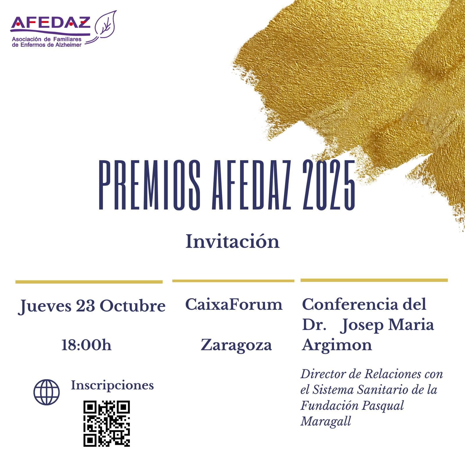 El próximo jueves 23 de octubre se llevarán a cabo los Premios Afedaz 2025 a las 18 horas, en Caixa forum, contaremos con la participación del Dr. Josep Maria Argimon que dará una conferencia.